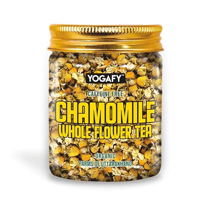 YOGAFY - Organic Chamomile Whole Flower Calming Herbal Tea | Caffeine Free Calming Tea | 50g- 80 Cups |