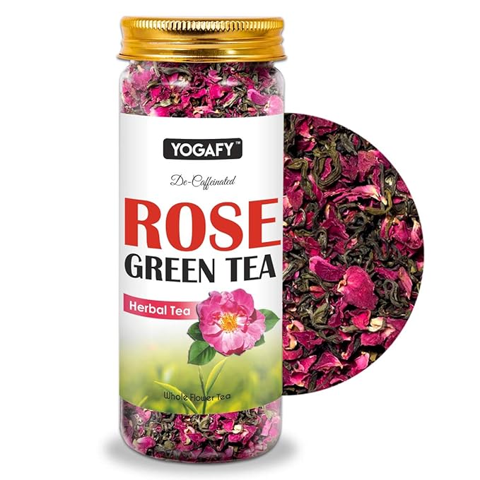 YOGAFY - Rose Green Tea Whole Leaf | for Healthy Skin and Detox | 100 Gram - 50 Cups |