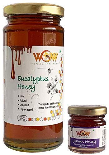 WOW BUZZING BEE - Raw Natural Unprocessed Raw Eucalyptus Forest Flower Honey 350 GMS & Raw Jamun Flower Honey 55 GMS Combo Pack