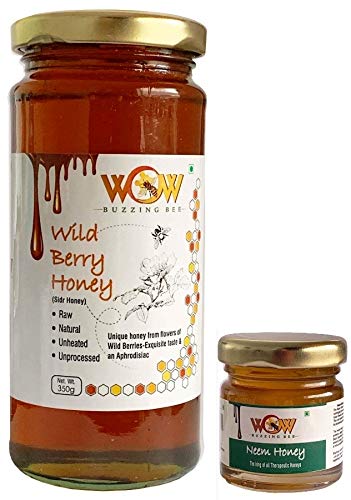 WOW BUZZING BEE - Raw Natural Unprocessed Raw Wild Berri-Sidr Forest Flower Honey 350 GMS & Raw Neem Flower Honey 55 GMS Combo Pack