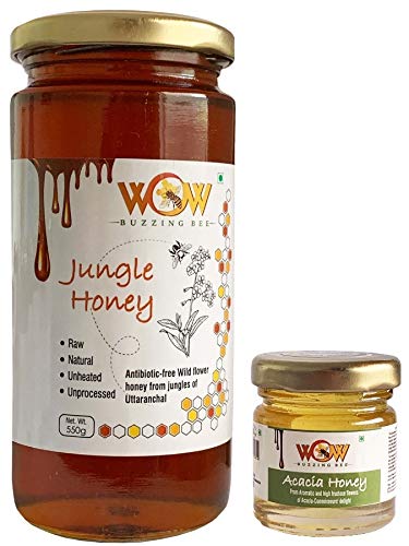 WOW BUZZING BEE - Raw Natural Unprocessed Raw Jungle Forest Flower Honey 550 GMS & Get Free Another Flavour Raw Flower Honey 55 GMS Combo Pack