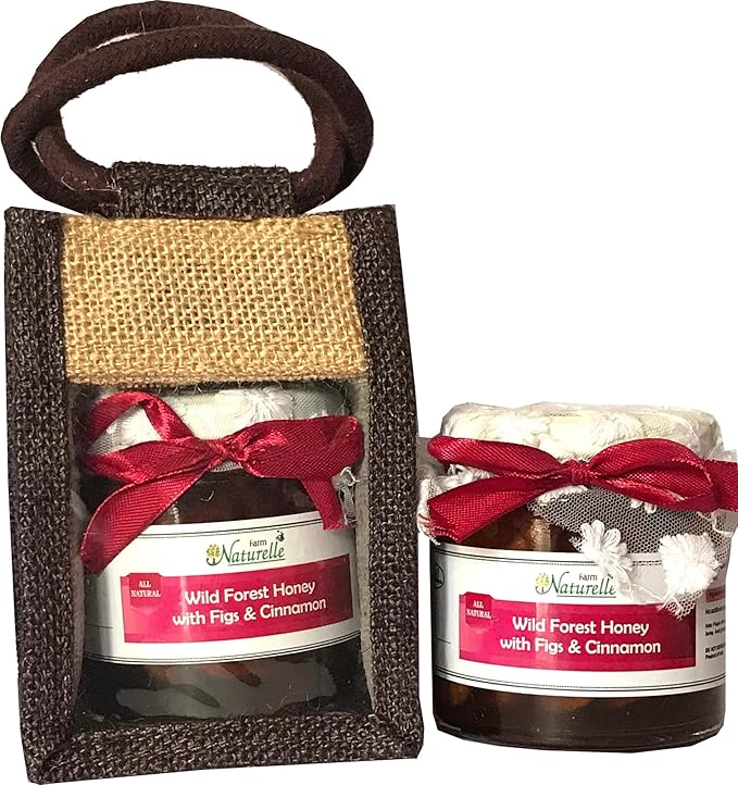 Farm Naturelle (Farm Natural Produce) Jute Bag with Cinnamon Infused Raw Natural Forest Honey and Figs (Anjeer) -250g