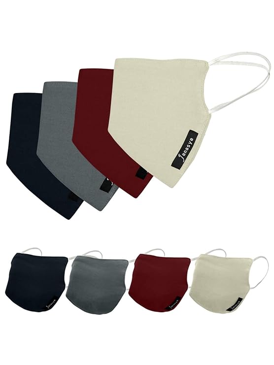 Janasya's Unisex Washable 2-Layer Cotton Solid Face Mask-Pack of 4