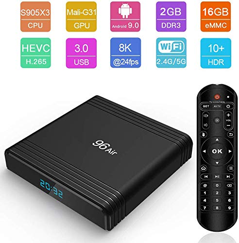 Profitech Communication® 96 Air Amlogic S905X3 | 2GB RAM + 16GB ROM | Android 9.0 | 64-bit Quad core ARM Cortex A55 CPU | Dual WiFi | 2.4G+5G/100M Ethernet/USB 3.0/H.265 3D 8K@75fps | Android TV Box