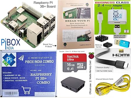 Raspberry Pi 3 Model B+ with 16 GB SD Card(Noobs Loaded) and ethernet Cable Combo