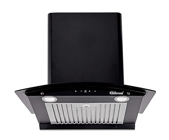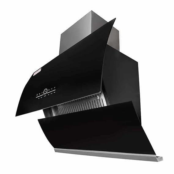 Hafele Curve 60X, 800 m3/hr Designer Wall mounted Chimney (2 Stainless Steel Baffle Filter, Super Illuminating LED Strip Panel, Touch Control with Digital LED Display), Black