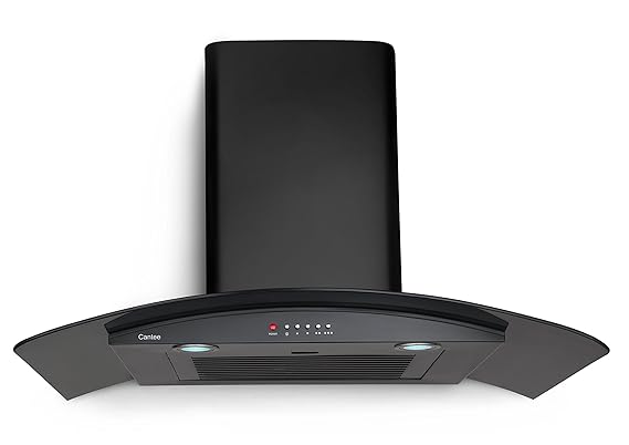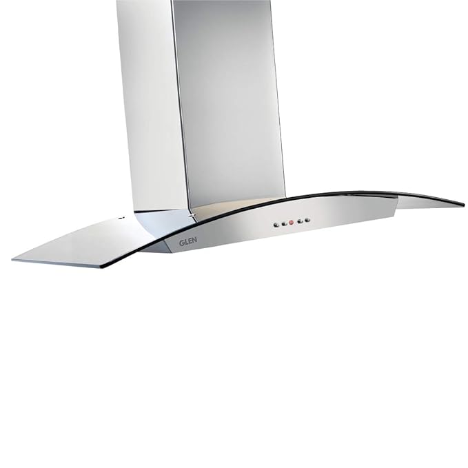 Glen 90cm, 1000 m3/h Curved Glass Kitchen Chimney (6071 SS, Baffle Filter, Push button control, Silver)
