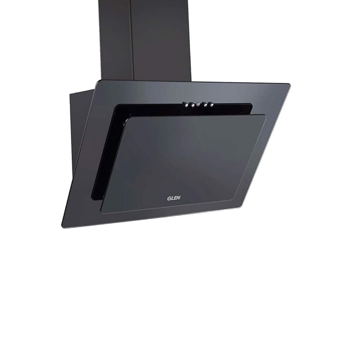 Glen 60cm 1000 m3/h Angular Wall Mounted Chimney (6077, Baffle Filters, Push Button Control,Black)